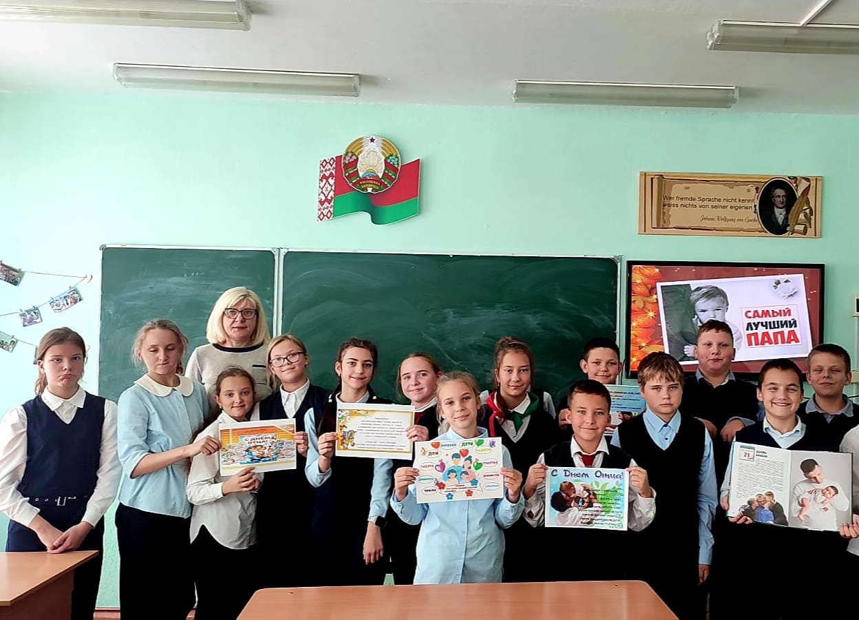 Один из самых молодых праздников – День отца – в Республике Беларусь отмечается 21 октября. Праздник подчёркивает роль папы в становлении ребёнка и способствует укреплению семьи в обществе. Для учащихся ГУО «Средняя школа №8 г. Слонима» библиотекарь отдела маркетинга, социокультурной деятельности и методической работы Беркус О. В. провела тематическую программу «Супер-папы, супер-дети». В ходе мероприятия она рассказала об истории возникновения этого молодого праздника, а дети рассказали о том, какие у них папы, что они умеют делать лучше всех. Ребята говорили добрые и ласковые слова о своих папах, угадывали загадки про пап, отвечали на вопросы викторины: «Отгадай кто мой папа…?»