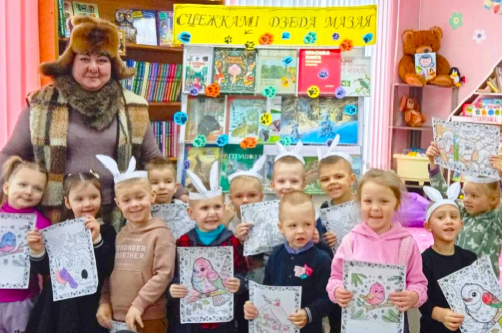 Перевоплотившись в известного литературного персонажа, он предложил малышам не только вспомнить птиц, которые остаются зимовать в наших краях, но и помочь спасти зайчиков. Условия игры были просты, но увлекательны: за каждый правильный ответ на загадку о зимней природе или пернатых ребёнок получал милые заячьи ушки.