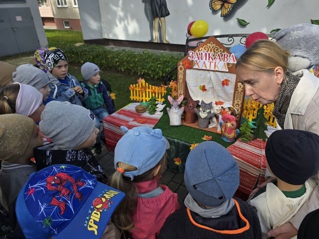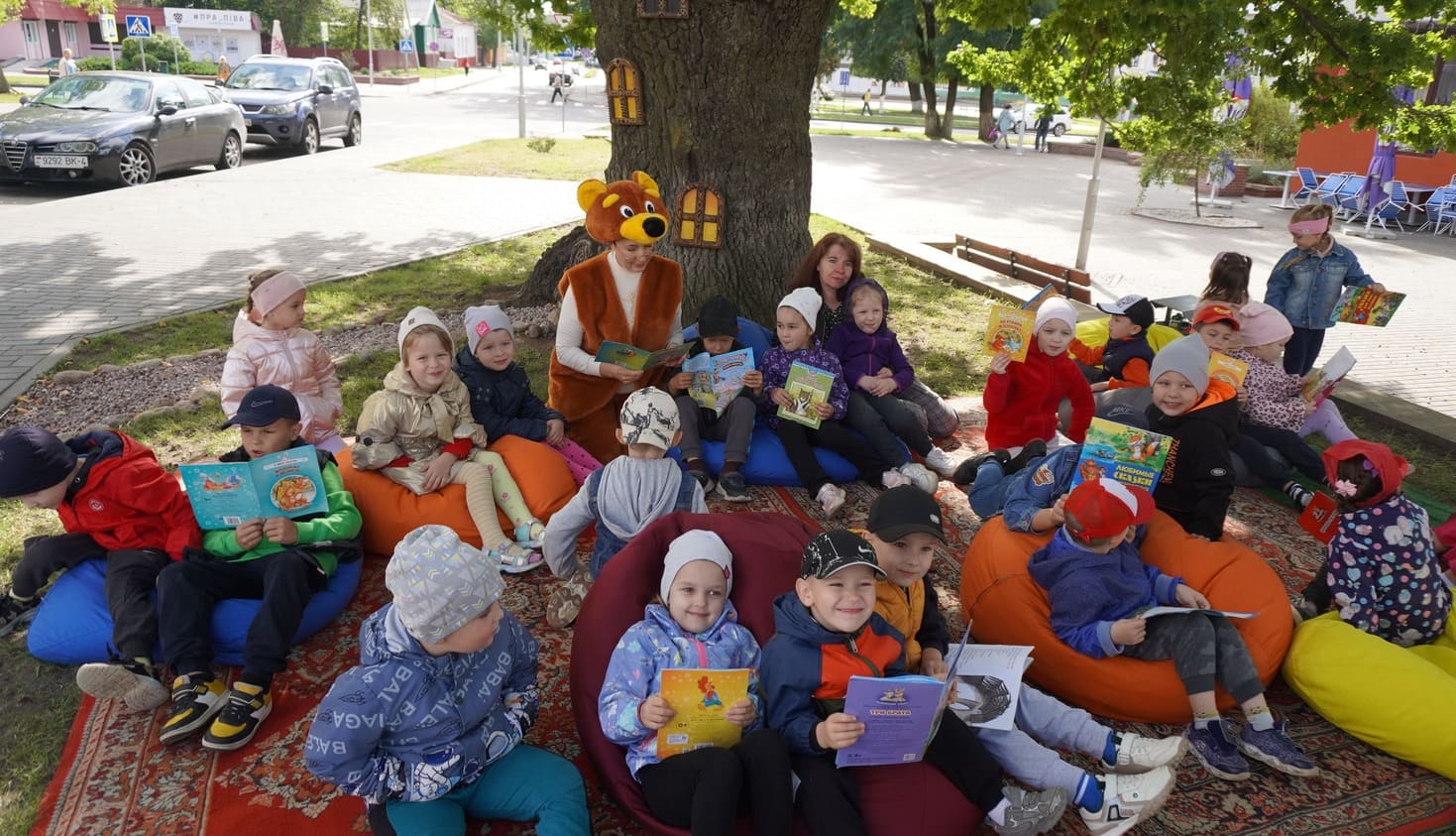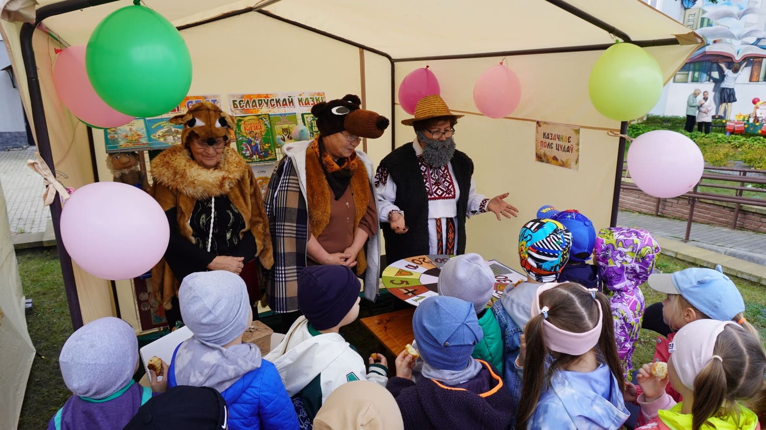 Знатно повеселила ребят зажигательная танцевальная игровая программа от Карамельки. На ковре под сказочным дубом проходили громкие чтения белорусских сказок вместе с медведем Михасем.
