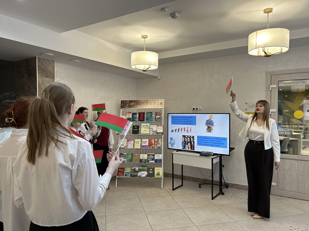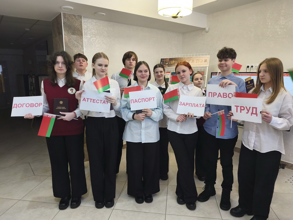 Ярко и позитивно прошел правовой флешмоб «Я знаю свои права на труд» с учащимися ГУО «Гимназия №1 имени Д.И. Волковича г. Мосты». В необычном формате под музыку и на фоне презентации ребята вместе пели и читали рэп, в котором говорили о труде, законах и правах работников.
