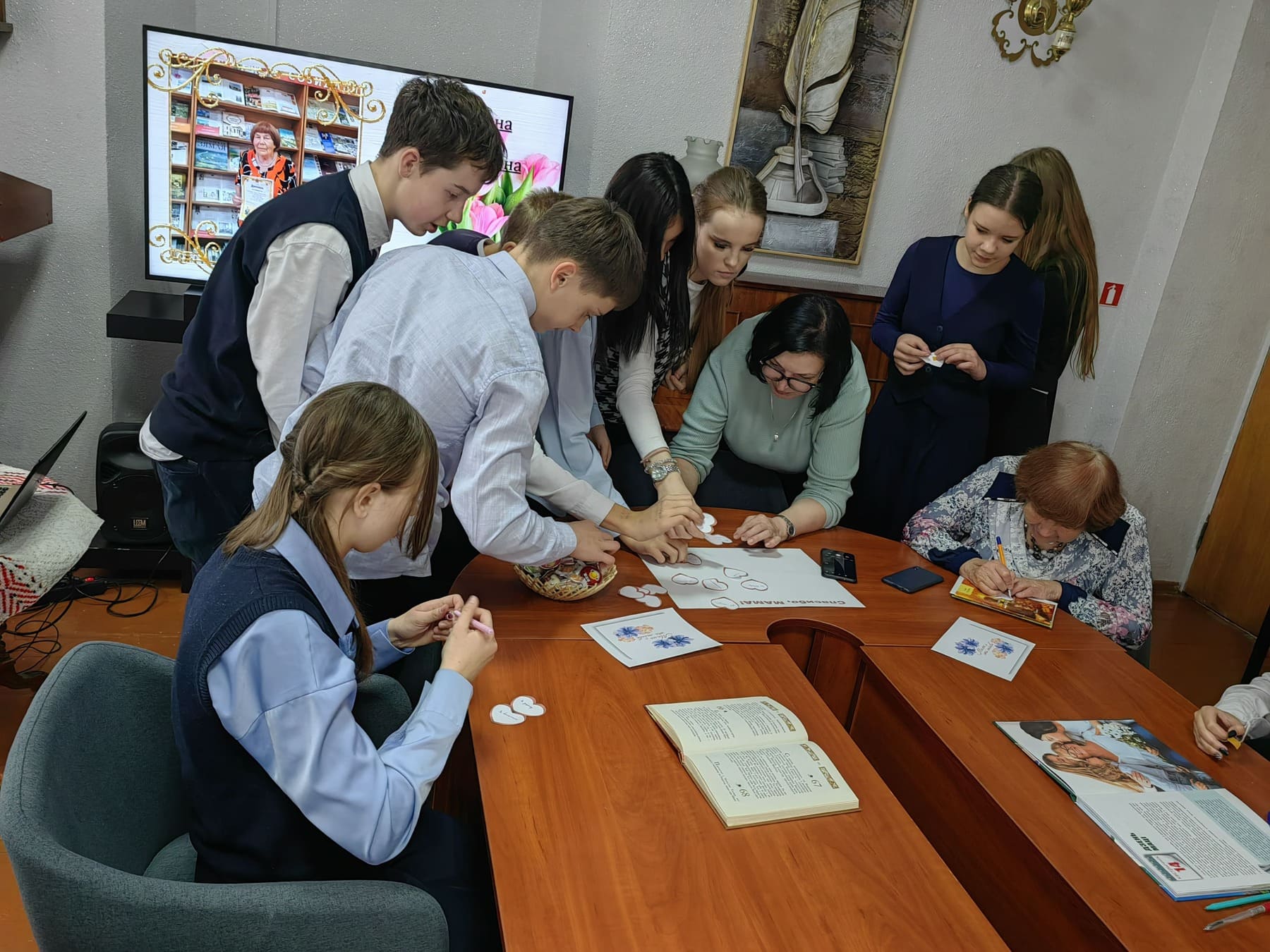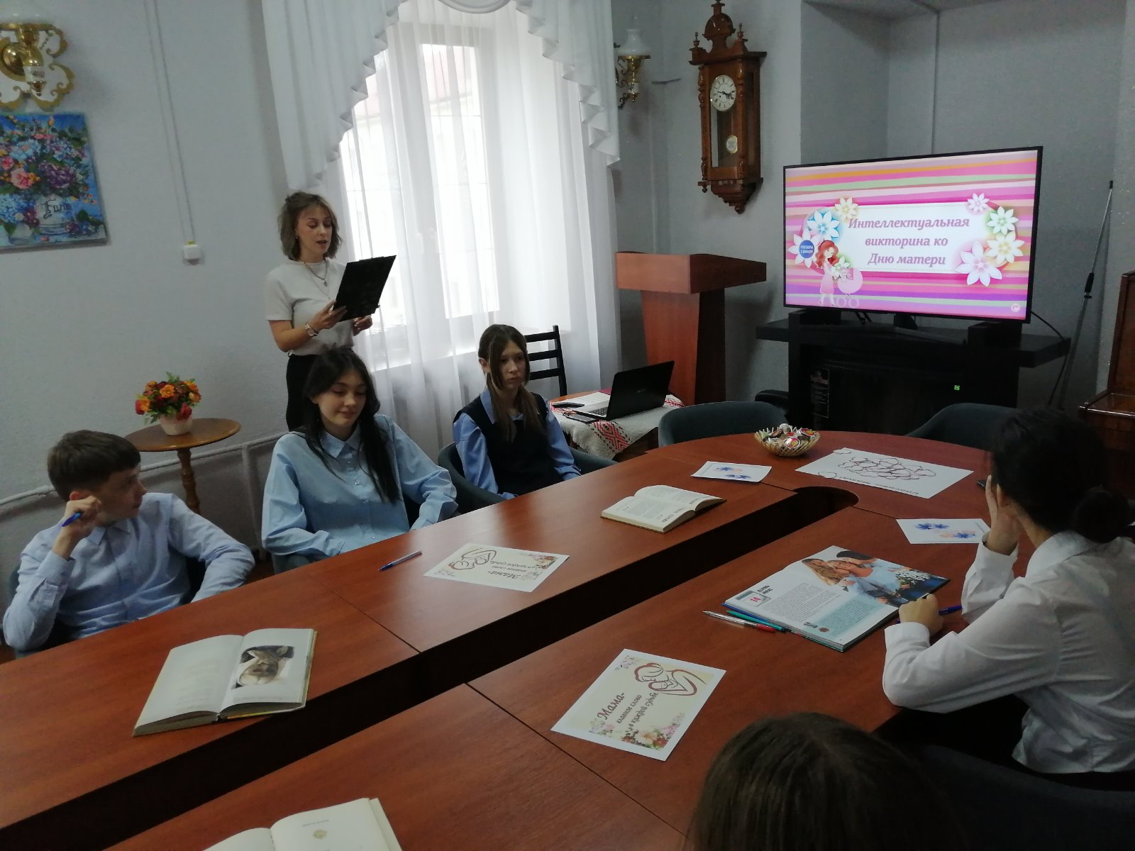 В гостиной Слонимской районной библиотеки им. Я. Коласа прошёл час поэзии «Любимой маме», приуроченный ко Дню матери. На мероприятии присутствовали учащиеся 9 «Б» класса ГУО «Средняя школа №2 г. Слонима». Третьяк Анна, заведующий отделом обслуживания и информации, начала встречу с видеоролика о маме, сказала несколько тёплых слов на тему праздника и провела викторину, в которой ребята активно участвовали. Встречу продолжила слонимская поэтесса Петелина Тамара Афанасьевна, которая рассказала о своей маме и прочла замечательные стихотворения на эту тему. В завершении праздника ребята приняли участие в интерактиве, где писали слова о том, за что они благодарны своим мамам.