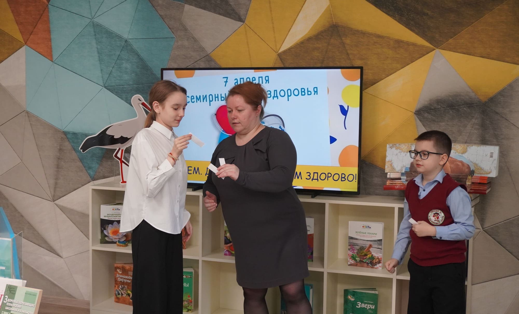 В рамках Всемирного дня здоровья в Мостовской районной библиотеке состоялся тематический час «Читаем. Двигаемся. Живём здорово!». Участниками мероприятия стали учащиеся ГУО «Гимназия №1 имени Данилы Ивановича Волковича г. Мосты».