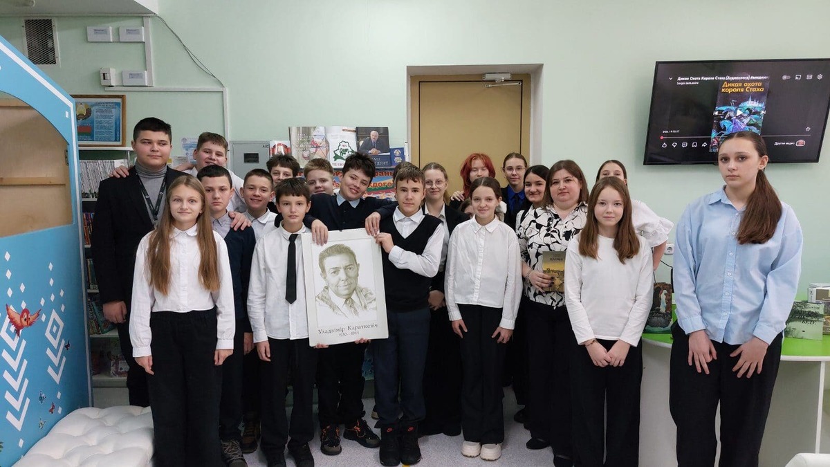 Школьнікі з цікавасцю слухалі інфармацыю пра жыццёвы і творчы шлях Уладзіміра Караткевіча, пазнаёміліся з класікай аўтара “Каласы пад сярпом тваім”, “Дзікае паляванне караля Стаха” і іншымі празаічнымі творамі, а таксама паэтычнымі зборнікамі. Вучні зачыталі ўрыўкі з твораў пісьменніка, з якімі раней пазнаёміліся ў школе. Дзеці праглядзелі буктрэйлер, у якім прадстаўлены самыя вядомыя творы пісьменніка, адказалі на пытанні віктарыны.